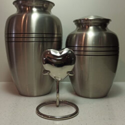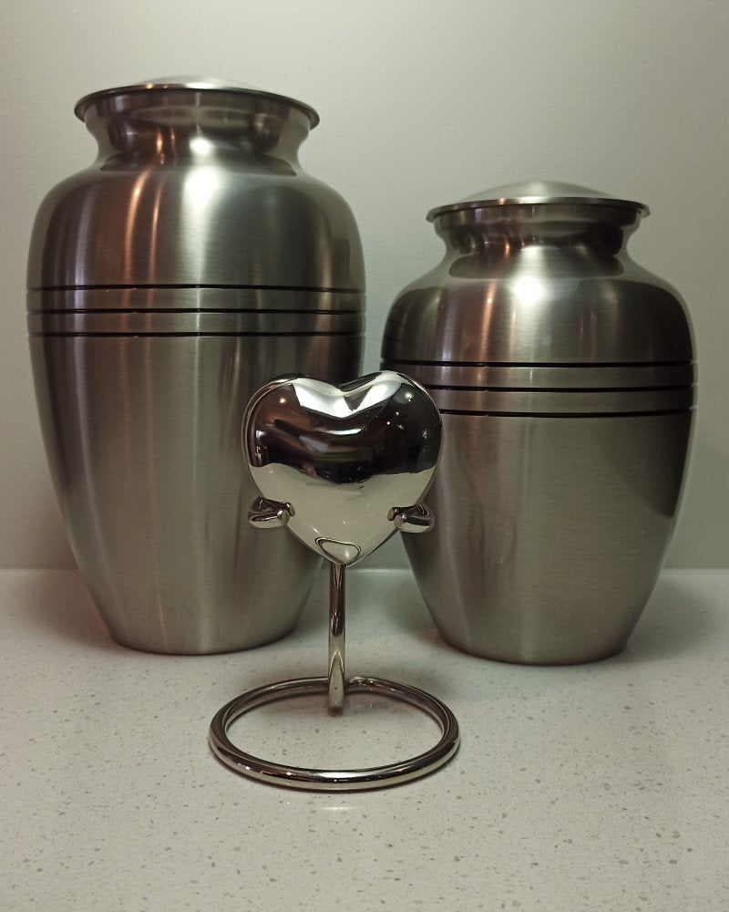 A lovely med gloss finish makes this urn a beautiful tribute to your loved one. Also available, a small heart shaped keepsake urn in matching silver colour.