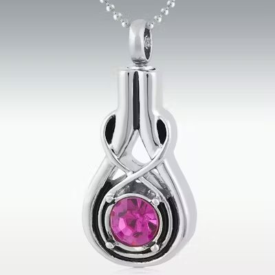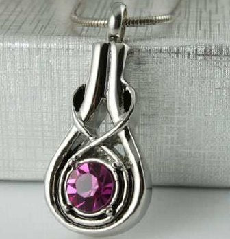 A stunning vial shape with an entwined thread in the eternity symbol shape.