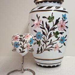 A classic white keepsake heart with adorned with delicate hand-painted flowers in beautiful soft blue, pink and green. With superb detail, this urn will be a talking point forevermore.