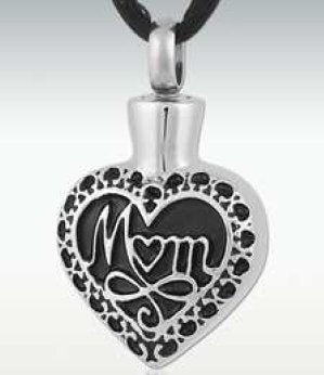 A beautiful heart pendant with black enamel inlay, silver detailing and M “heart” M written in the middle in silver. No better way to keep Mum close forever.