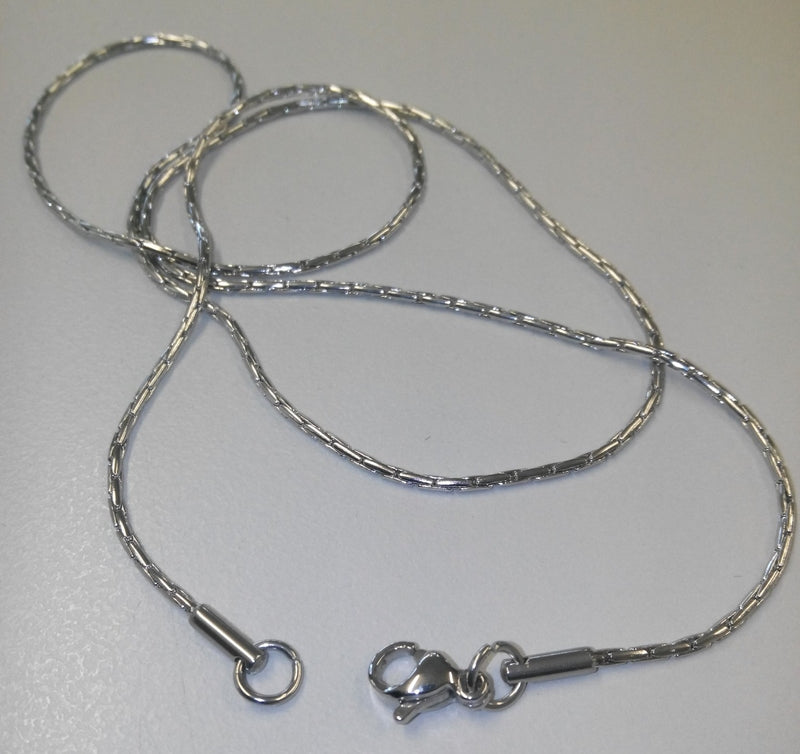 Silver chain. Made of surgical stainless steel. Claw clip. 50cm long.