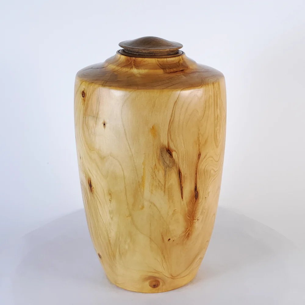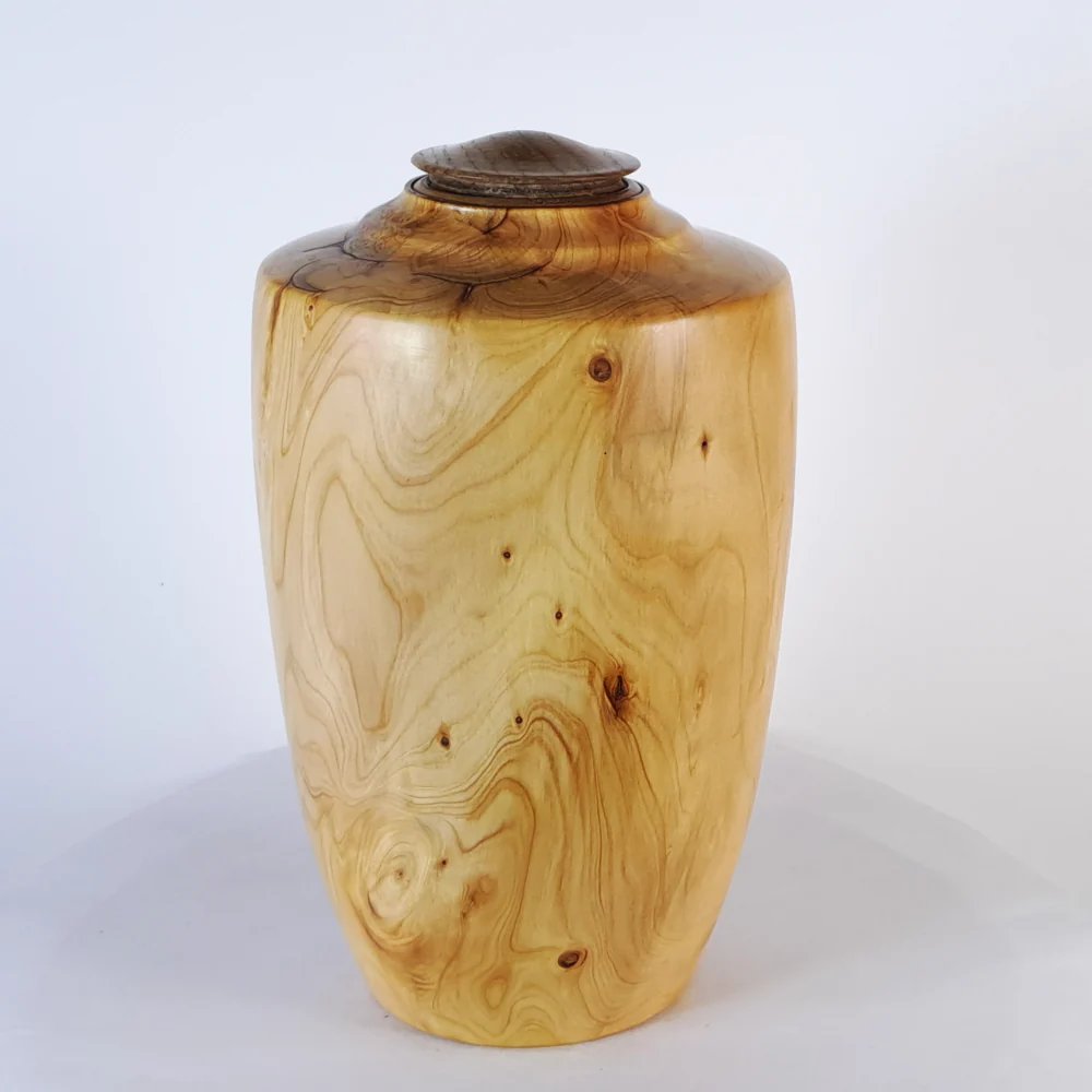 This wooden urn is handcrafted and a unique piece of work created by a New Zealand master craftman.